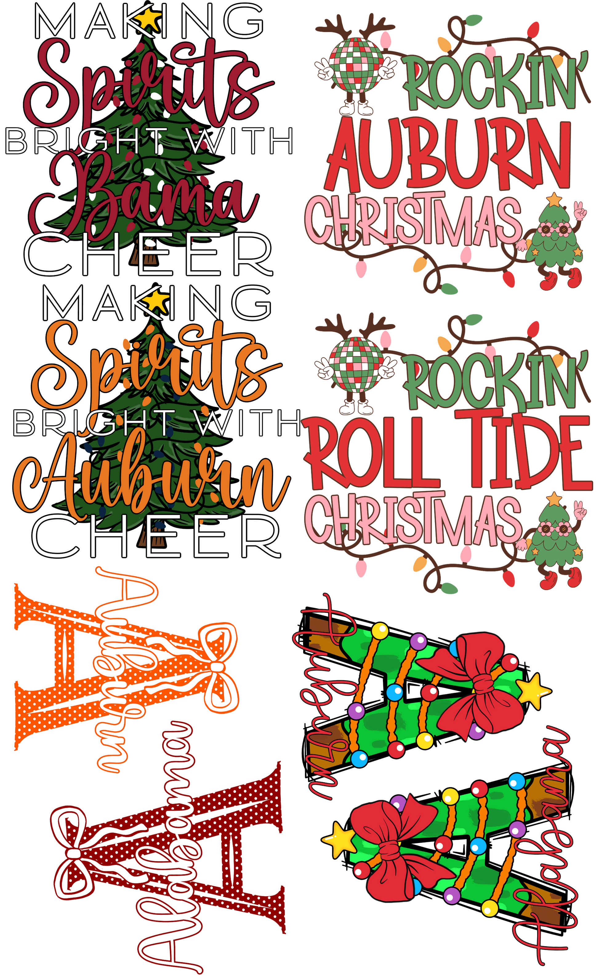 Alabama Auburn Christmas premade gang 36 inch